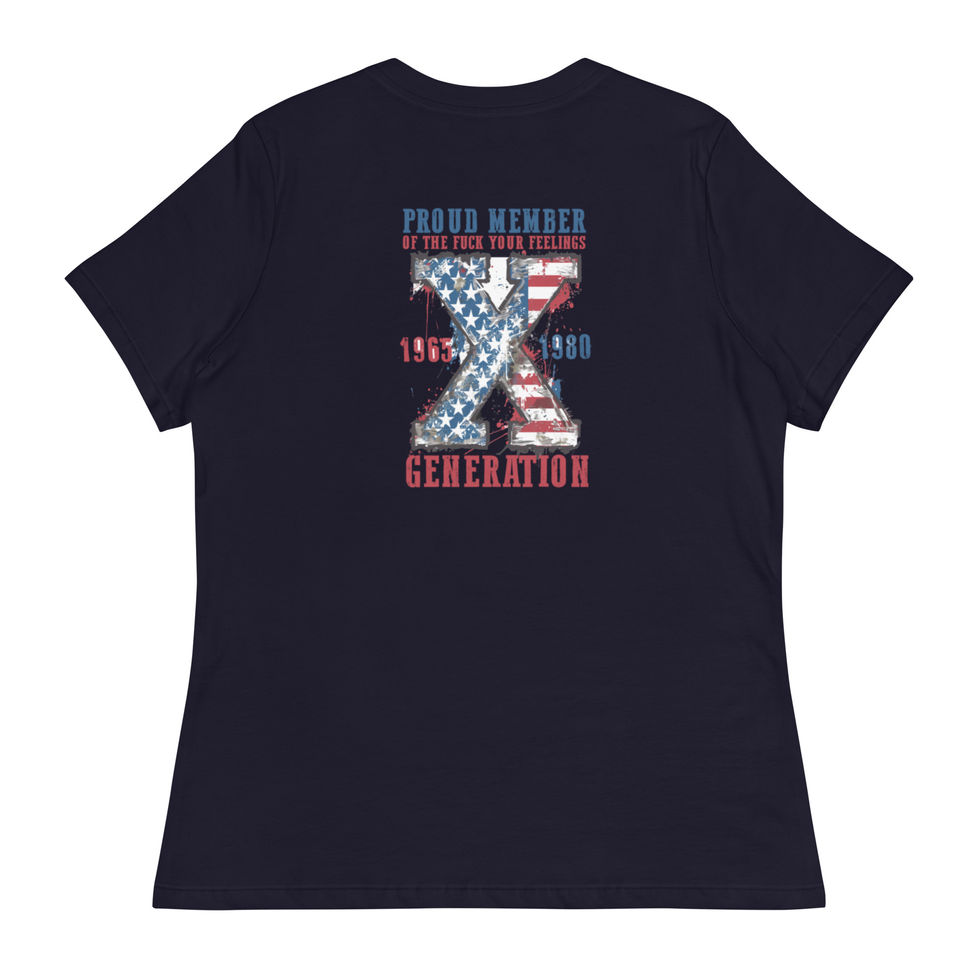 Embrace nostalgia with our Gen X Women's Relaxed T-Shirt. Perfect for any occasion, this custom-made tee blends comfort with style, making it an essential addition to your wardrobe. As a local business dedicated to creating personalized items, we ensure each product is crafted with care and attention to detail. Discover the ultimate blend of quality and personalization with our unique offerings.